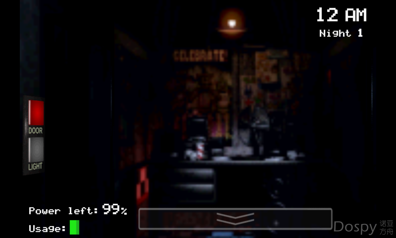 你必须小心地从你的小办公室看保安摄像机。你每天晚上都可以使用的电力非常有限(你知道,公司预算削减)。这意味着当你晚上的电源耗尽时-不再有安全门,不再有灯!如果有些事情不对——即如果弗雷德迪熊或他的朋友不在他们合适的地方,你必须在监视器上找到他们,并在需要时保护自己!