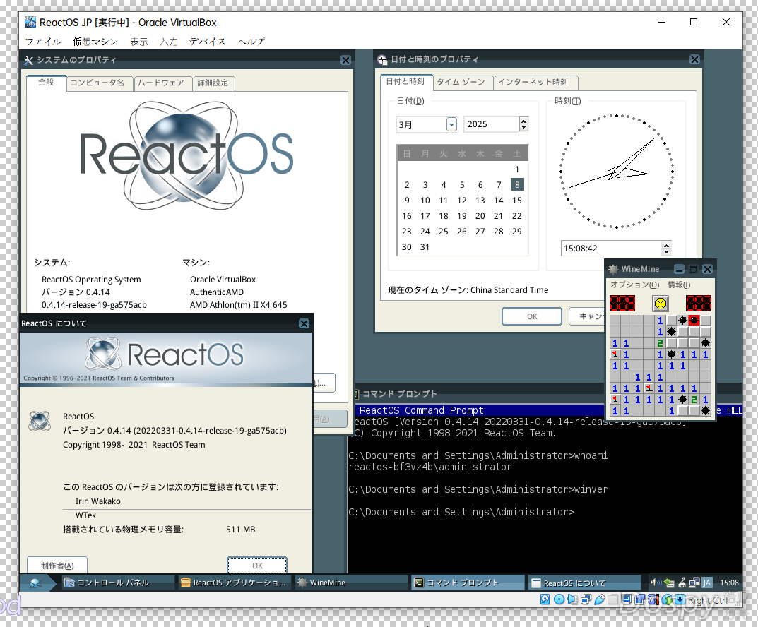 由于 ReactOS 是开源的,没了Key部分真的舒服。 特性 系统大体的样子没什么说的,和旧版 Windows 长得很像。不过内置的很多软件可以感觉到是 Wine 改过来的。 ReactOS 提供了一些基本的系统工具和实用程序,如任务管理器、命令提示符等。这些工具在功能上与 Windows 中的类似工具相似,能够满足日基本的系统管理和操作需求。