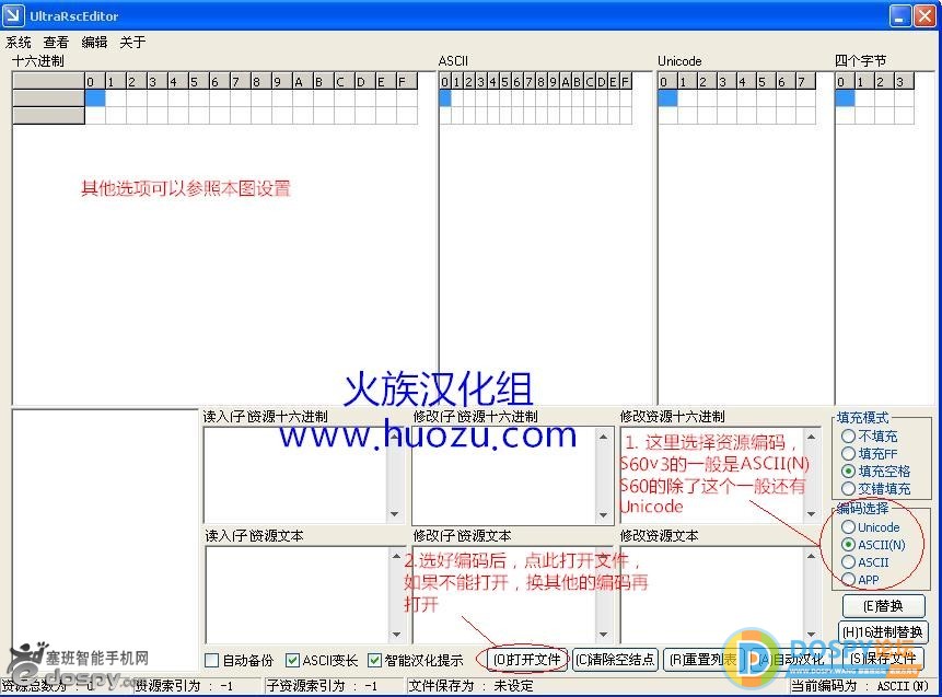 在汉化之前,让我们先了解一下手机编码,手机编码一般有Unicode和ASCII码